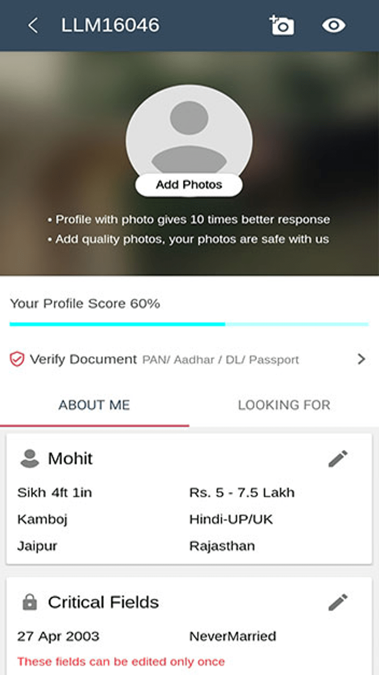 We believes in providing the most secure and convenient matchmaking experience to all by ensuring 100% screening,exclusive privacy options, photo protection,verification of Phone and Email and more.....Mera Humrahi Matrimony has created a world-renowned service that has touched over 2+ million people